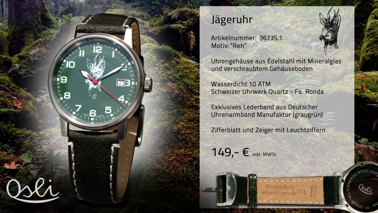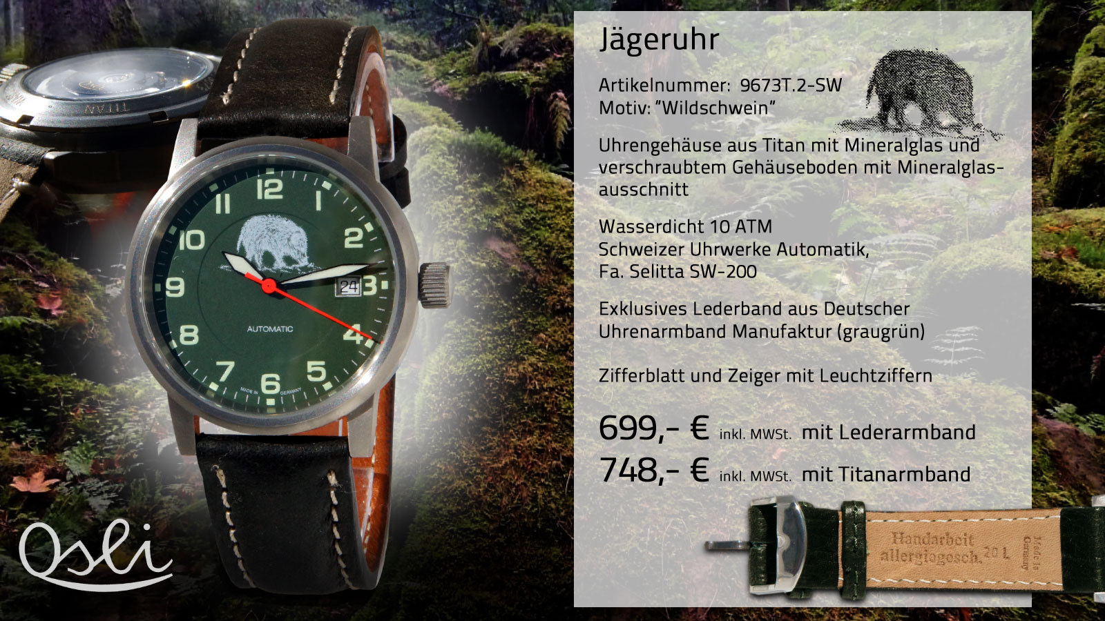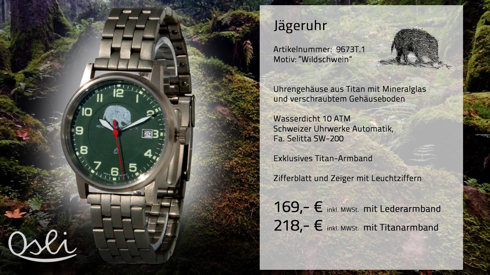 Jägeruhren Marke "Osli" seit 1969 von Oswin Linder - selbst passionierter Jäger, wie auch Sohn und Enkel...