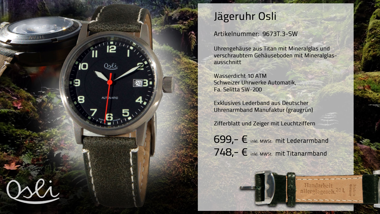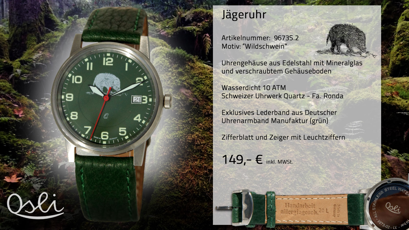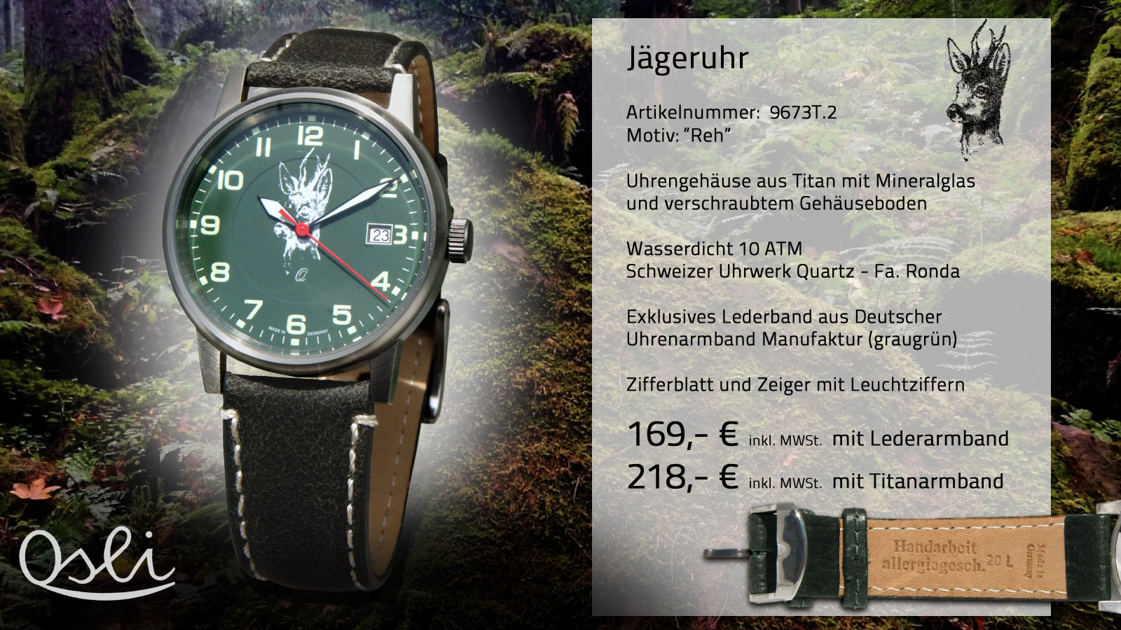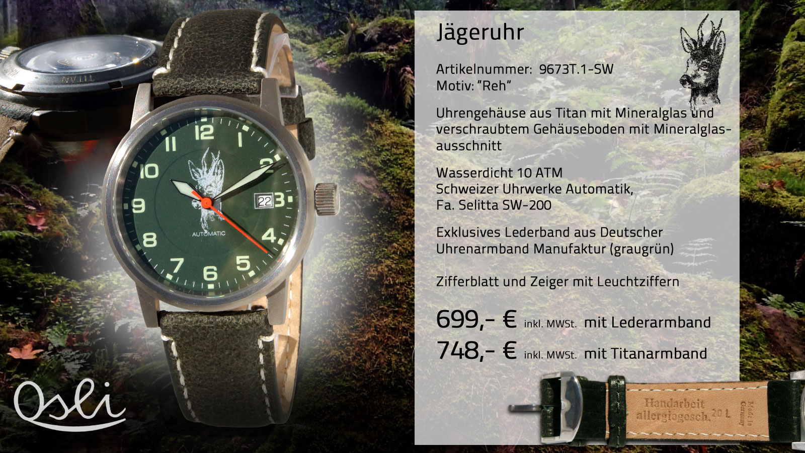Jägeruhren Marke "Osli" seit 1969 von Oswin Linder - selbst passionierter Jäger, wie auch Sohn und Enkel...